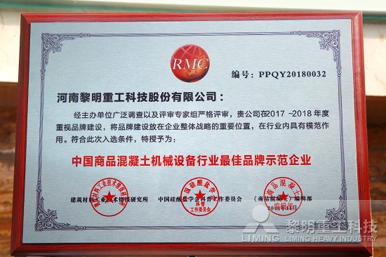 經(jīng)主辦單位廣泛調(diào)查以及評審專家組嚴(yán)格評審,黎明重工2017-2018年度重視品牌建設(shè)的突出表現(xiàn),在中國商品混凝土行業(yè)企業(yè)專家委員會第四屆第二次會議上,黎明重工獲得“中國商品混凝土機(jī)械設(shè)備行業(yè)更佳品牌示范單位”。